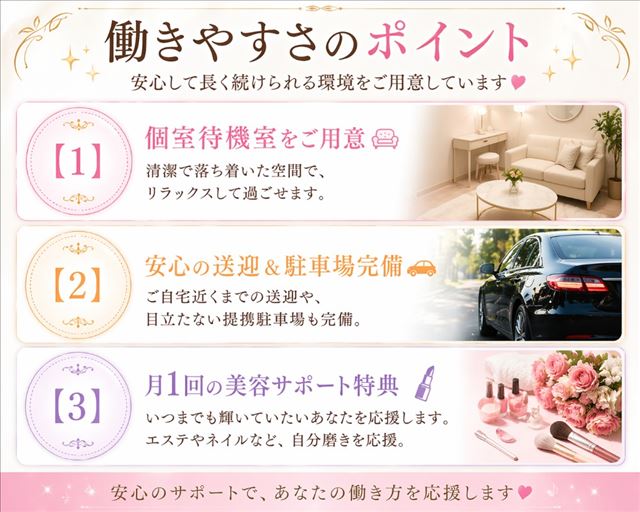 また、グループで複数店舗を運営しているため、ご希望やご状況に合わせた働き方をご提案することも可能です。
