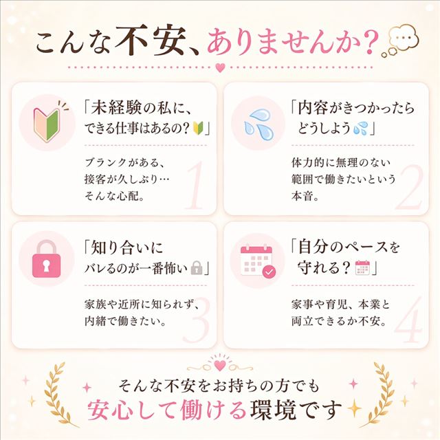 未経験の方やブランクがある方も多く在籍しており、無理のない範囲で働ける環境を整えています。