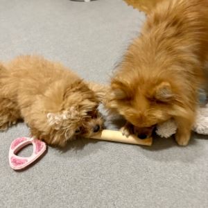 こんにちは♪ 前田です(*_*) 子犬との生活が始まり 約2カ月・・・ まだまだ2匹が仲良しとは いきませんが…!笑 たまにオモチャを 共有!?しております (*'ω'*) というか、弟ワンコの方が 何にでも興味があるので 奪いにいく感じでしょうか&hell…