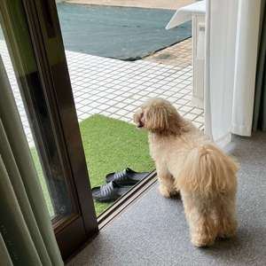 ガーデンの 「黒川」です(^^)/ 前田マネージャーのわんこが 何か気になるようで じっと外を見ていました♪ 遠くを飛んでいる ヘリコプターの音が 気になるようです♪ それにしても 後姿がチャーミングですね(^^)/