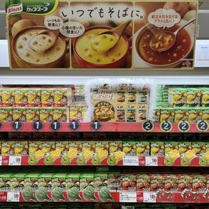 新人スタッフ 「野々山」です m(__)m 今年は寒暖差が激しいですが 特に朝はさむいです (>_<) そんな時は あたたかいスープが 飲みたくなります♪ 便利なのが 【クノールカップスープ】! 種類も豊富で 栄養もたっぷりです♪