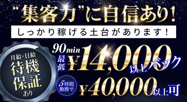 当店では、日給保証はもちろんのこと、屈指の「好待遇」で皆様からのご応募をお待ちいたしております。