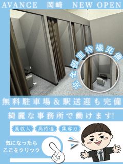 ブログをご覧いただきありがとうございます!AVANCEの佐藤です!オープンしたての岡崎店はピカピカの綺麗な事務所で働けます!改装工事に約2か月かけたこだわりの空間です✨■ アクセス・駐車場場所は 「東岡崎駅」から車でわずか5分!・駅までのお迎え無料・無料駐車場完備で車通勤も楽々・完全送迎スタイルで 誰にも会わずプライ…