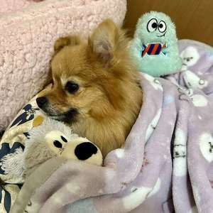 寒いと思って愛犬にブランケットをかけてあげるのです…