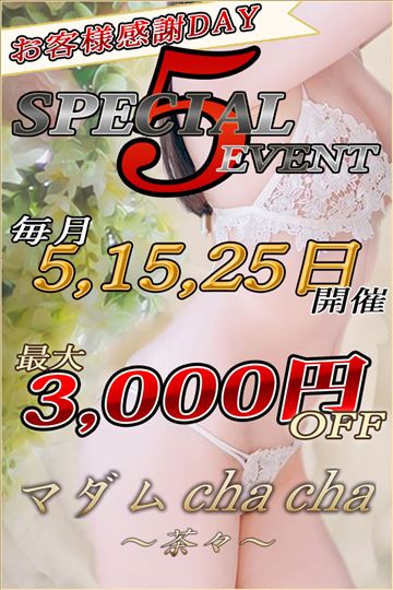 毎月5のつく日はマダム茶々イベントDAY☆彡