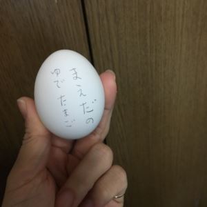 もらった【ゆで卵】に名前を書いておきました(*´▽…