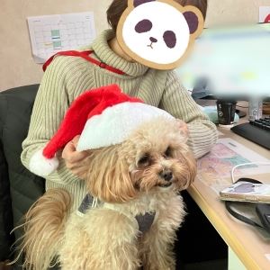 【事務所での1コマ】クリスマス帽を被せてみました♪