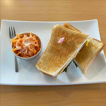 シャキシャキ人参サラダも美味なサンドイッチモーニング