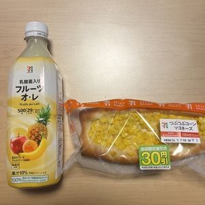 出勤前にセブンの「つぶつぶコーンマヨネーズ」と「フ…