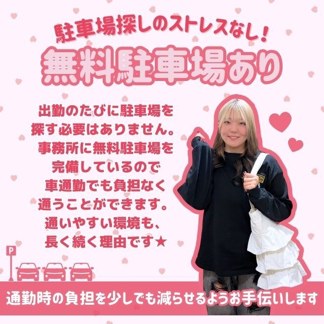 | 勤務日 | 自由出勤制。シフトはご希望通りに対応します。 |