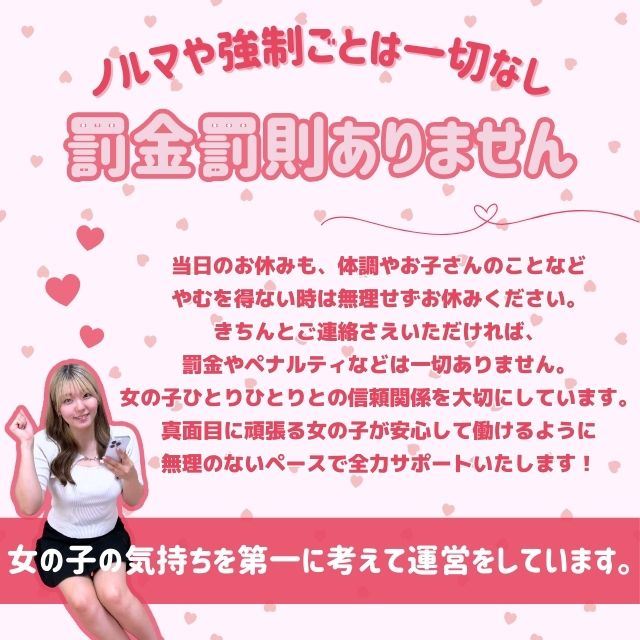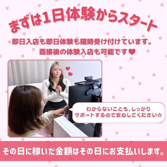 体験入店でも稼いでいただいた金額は、全てその日に全額日払い可能ですので、必要な方は担当にお伝えくださいね。