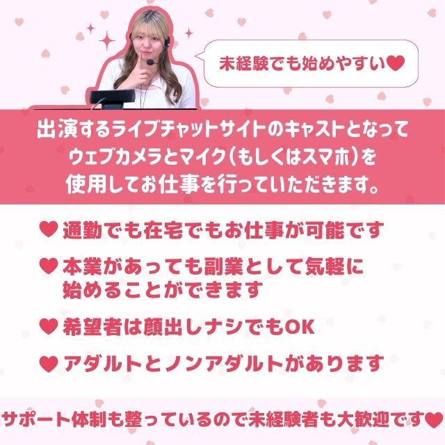 経験者のチャットレディさんからも「初めからココにすれば良かった!」と、言ってもらえるチャットレディのお店です。