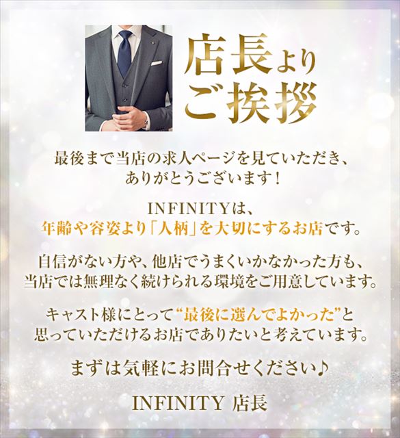 INFINITYでは、20代~50代までの幅広い世代の女性を募集しております✨