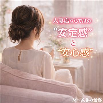 こんにちは。M~人妻の誘惑 店長です😊当店に在籍しているのは優しくて包容力のある大人の女性たち。落ち着いた雰囲気の中でゆったりとした時間をお過ごしいただけます。日頃の疲れを癒したい方優しく寄り添ってほしい方そんなお客様にぴったりのお店です✨本日も魅力的な女性が多数出勤しております。ぜひ一度M~人妻の誘惑へお越しくだ…