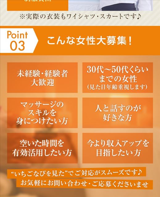 OLさん・人妻さんなどの30代女性、熟女層の40代〜50代女性の方も気兼ねなくご応募くださいね。