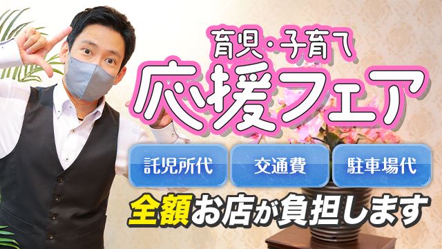当店では、「育児・子育て応援フェア」と称しまして「託児所代・交通費・高速代・駐車場代」を全額お店負担しております。※お子さんがいない方も適応されます。ご安心ください。