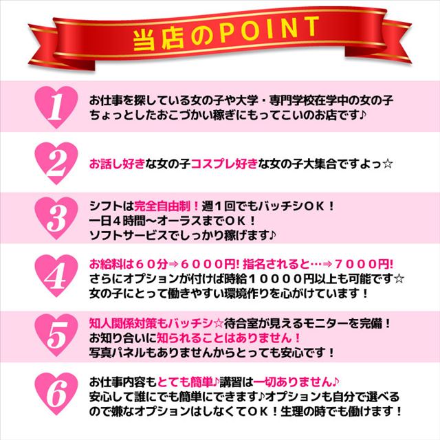 在籍しているのは20代の明るい性格の女の子ばかり、シフトを自由に組めるメリットを活かして効率よく稼いでいます。