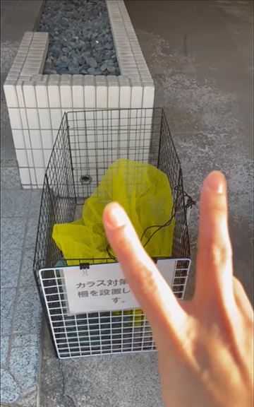 こんばんは、スタッフ~のべっちです!カラス対策、ごみの日の当日!百均グッズで自作した柵を設置してみました(`・ω・´)カラス、、しっかり狙ってますね~~さあ、、対策の効果のほどはいかに!?