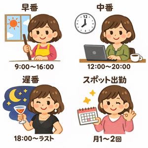 働き方は本当に人それぞれです✨ 「早番でサクッと稼ぎたい方」 「中番でゆったり働きたい方」 「遅番でしっかり高収入を狙いたい方」 さらに 「レギュラー出勤で安定して稼ぎたい」 「週末だけ効率よく働きたい」 「月に数回だけ自分のペースで無理なく続けたい」 などなどライフスタイルに合わせた働き方が可能で…
