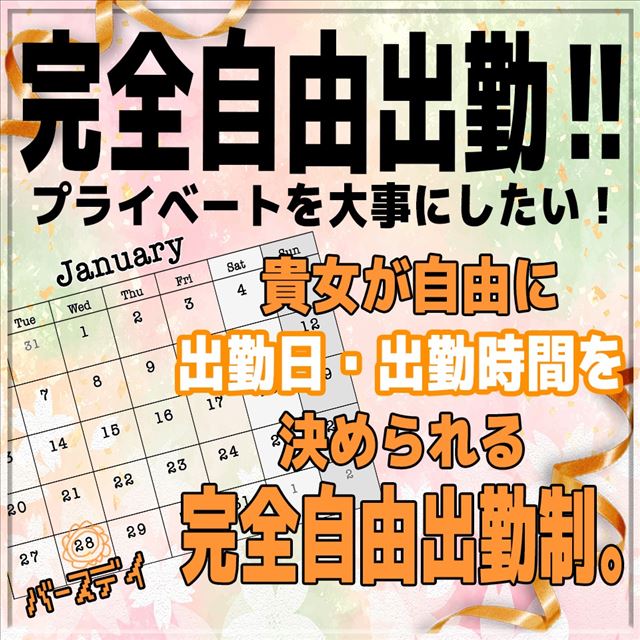 | 勤務日 | 自由出勤!自分でシフト選べます🌟 月に1,2回でもOKです! |