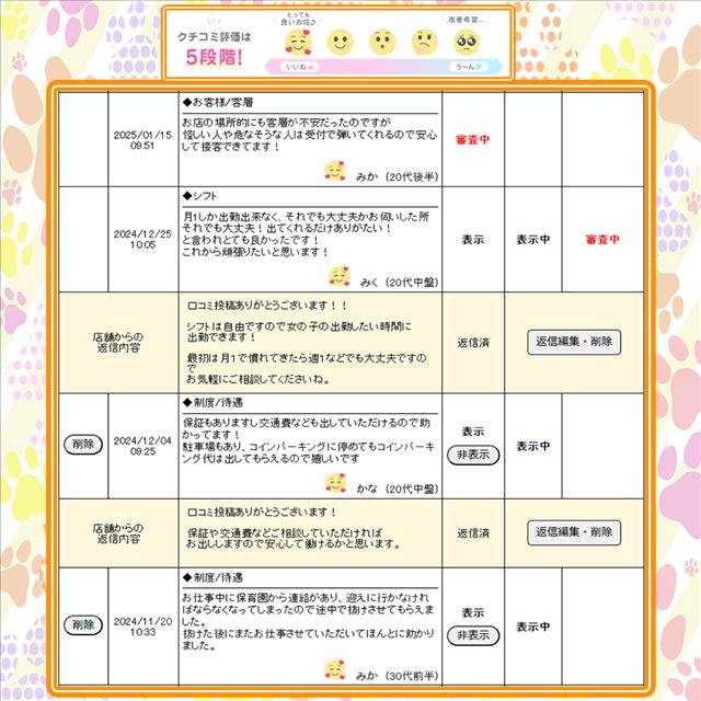 女の子からの口コミを大切に考え働く環境を改善していきます!