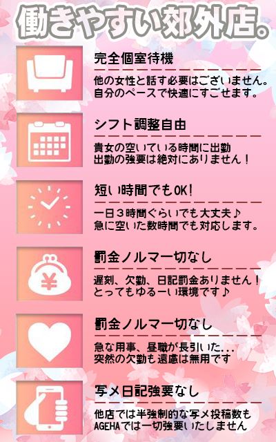 | 応募資格 | 18歳以上の女性 ※経験・未経験は問いません。 高校生不可 |