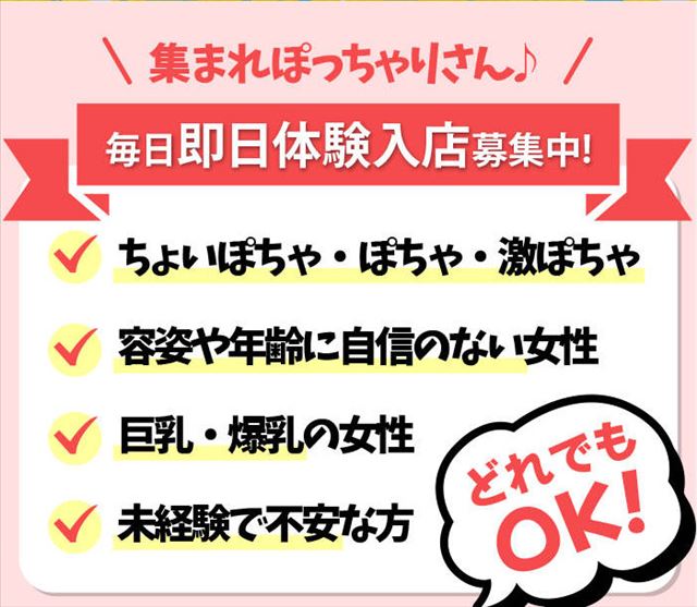 | 応募資格 | 18歳以上(高校生不可)ぽっちゃりな女性大歓迎! |