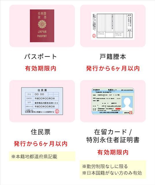 【住民票/パスポート/戸籍謄本・抄本】から1点お持ちください。