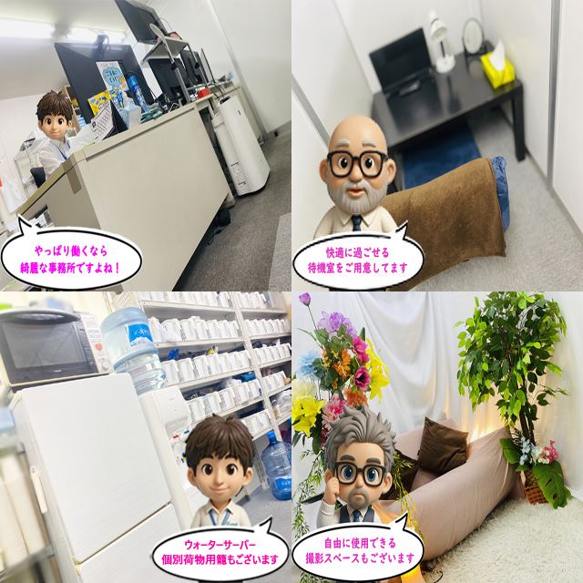 業界感を感じさせない清潔感溢れる空間で、皆様が気持ち良くお仕事が出来る様に心がけています!
