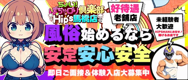 ポッチャリ店は暇だと思っている経験者の方は、まず集客力に驚くはずです。ちょい!ぽちゃロリ倶楽部Hip's馬橋店は、長年の経営実績と実力で、女の子のやる気次第で高収入を得ることが可能です。今まで自分に自信が無かった女の子でもシッカリ稼いでもらえるようノウハウをお教えいたします!