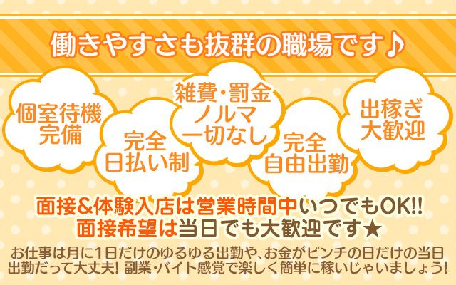 風俗やアロマのお仕事がはじめての女の子ばかりですが、入店された女の子はしっかり稼いで目標を達成しています!