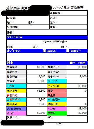 東京からプチ出稼ぎ中のMさんの【出稼ぎ初日給与明細】