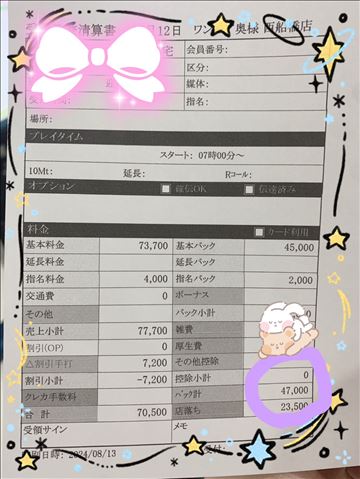【ユメオトグループ】当店のお給料目安(バック金額)