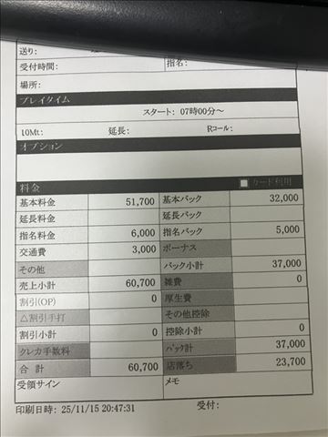 人気キャストOさんのお給料が89,000円でした!