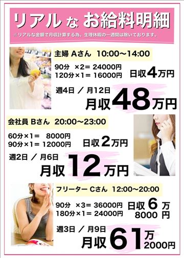 【ユメオトグループ】当店のお給料目安(バック金額)