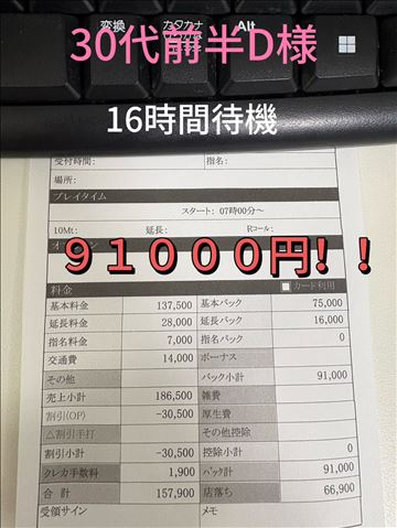 東京からプチ出稼ぎ中のMさんの【出稼ぎ初日給与明細】