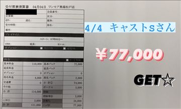 4/4 キャストSさんのお給料公開☆