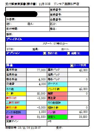 東京からプチ出稼ぎ中のMさんの【出稼ぎ初日給与明細】