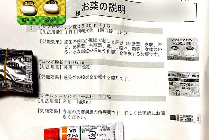 これが実際に出してもらったお薬です。 アジスロマイシン/抗生物質 クロマイ膣錠/膣の中に使用するものです リンデロン/外陰部の痒みが起きた時に使用するものです(炎症を鎮めるためにステロイド軟膏)