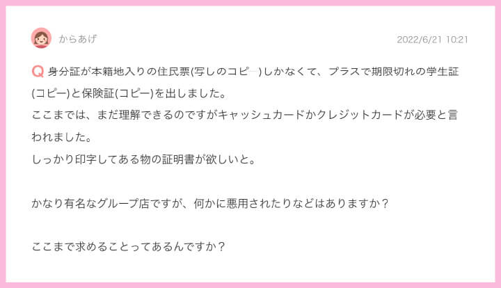 まず、提出されたものがコピーの場合、たとえ本⼈であっても偽る事ができる時代ですので、キャッシュカードorクレジットカード(18歳未満は作れないため)の提出を求められたのだと思います。