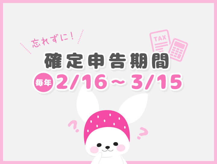 毎年2/16-3/15の1ヶ⽉間が確定申告の期間になります。確定申告の時期は提出期限が近くなると窓⼝が混み合うので時間に余裕を持って提出するか、e-taxや郵送などの⽅法を使うのがオススメです。
