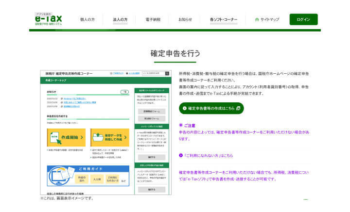 e-taxのサイトはこんなように表⽰されます