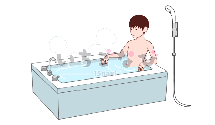 2.お客様に先に湯船に⼊ってもらい体を温めてもらう