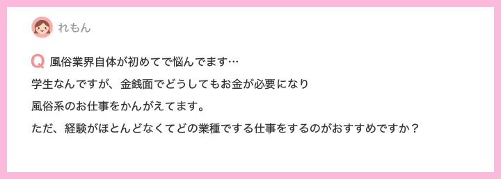 学⽣さんからの質問にお答えしたいと思います。⾦銭⾯で⾵俗のお仕事を始めようか悩んでいらっしゃるんですね。初めてで経験がないと『どの業種に⾯接に⾏こうかな?』って悩むと思います。右も左もわからないと、どんなお店なのかは営業⽤のホームページを読んでもどんなサービス内容なのかわからない⤵以前のコラムでお仕事を決める際のチャートを作成したので参考に読んでみてください♪