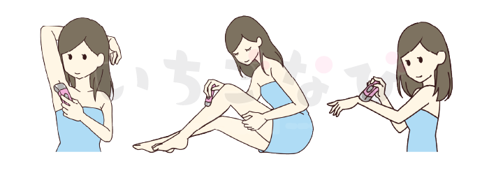 ⿊ずみなどが気になる場合は除⽑クリームなどを使うのも⼀つの⽅法です。ただ、成分がお肌に合わないものもあると思うので敏感肌⽤のものを選ぶようにするのが良いかとおもいます。