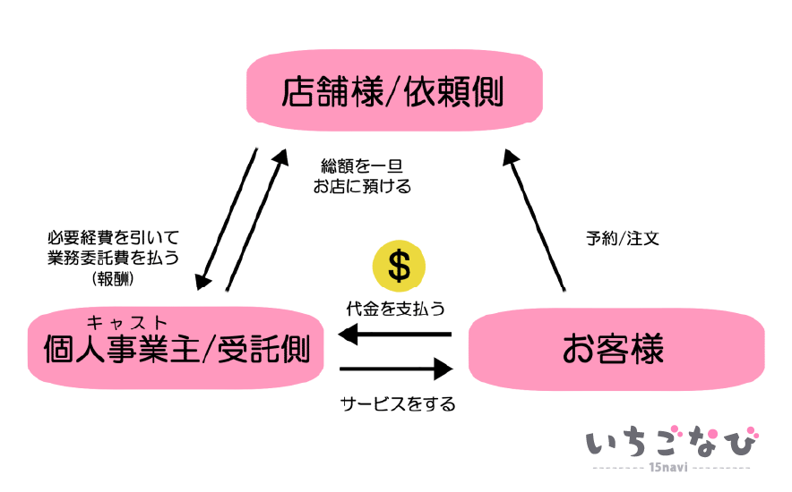 お店が⼥の⼦にお仕事を振り分ける(業務委託)