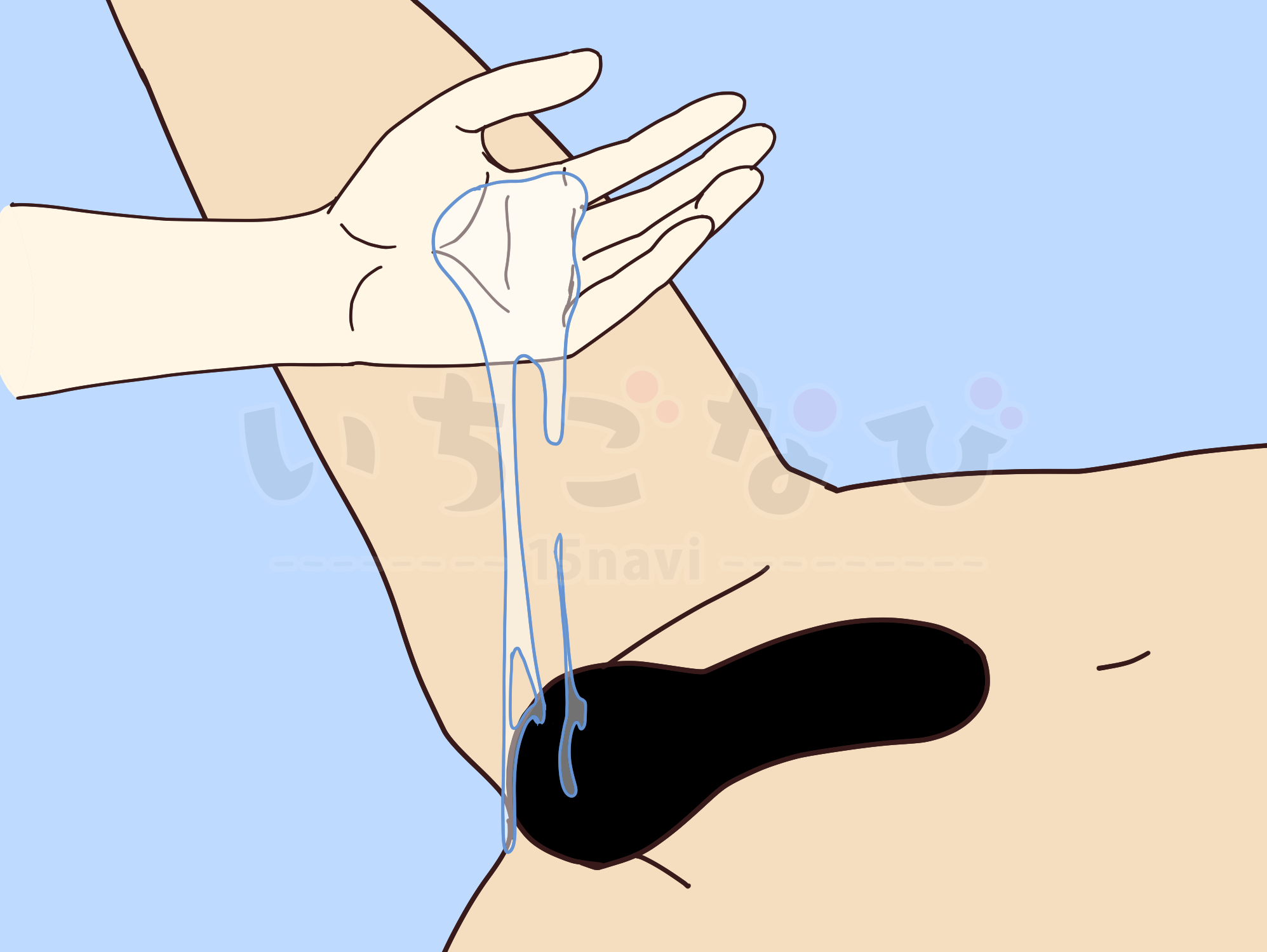 タマタマに痛いだけのことをずっと続けてしまうとお客様のお腹が痛くなってしまう事があるので、触り⽅も強弱をつけて⾏ってあげましょう。