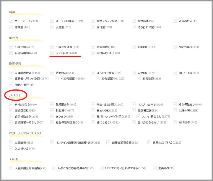 お仕事を探す際に待遇での検索をチェックすると⾊々な待遇の種類が出てきます。⾃分の理想の働き⽅をこの項⽬から探してみると分かりやすくていいですね。