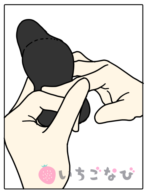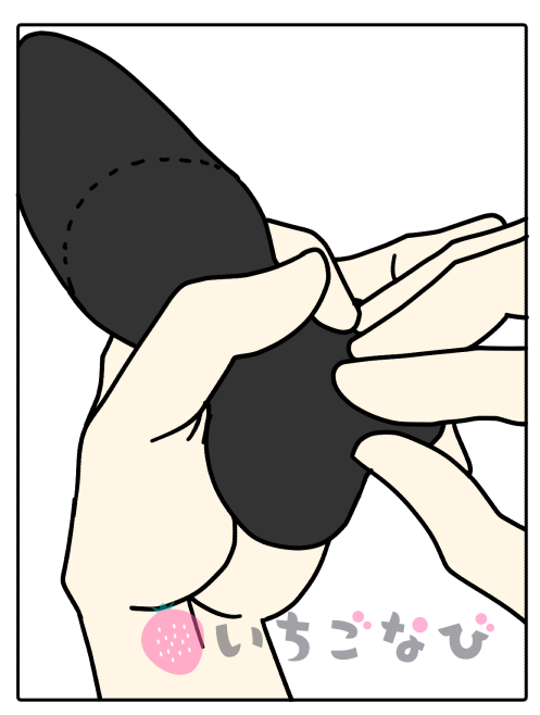 1.おちんちんと睾丸の境⽬(つけ根)を優しく指で流すように押す