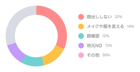 次に多かったのはモニターなどの顔の確認。風俗店での勤務の際に知り合いがお客になるというアクシデントは確実に避けられます。